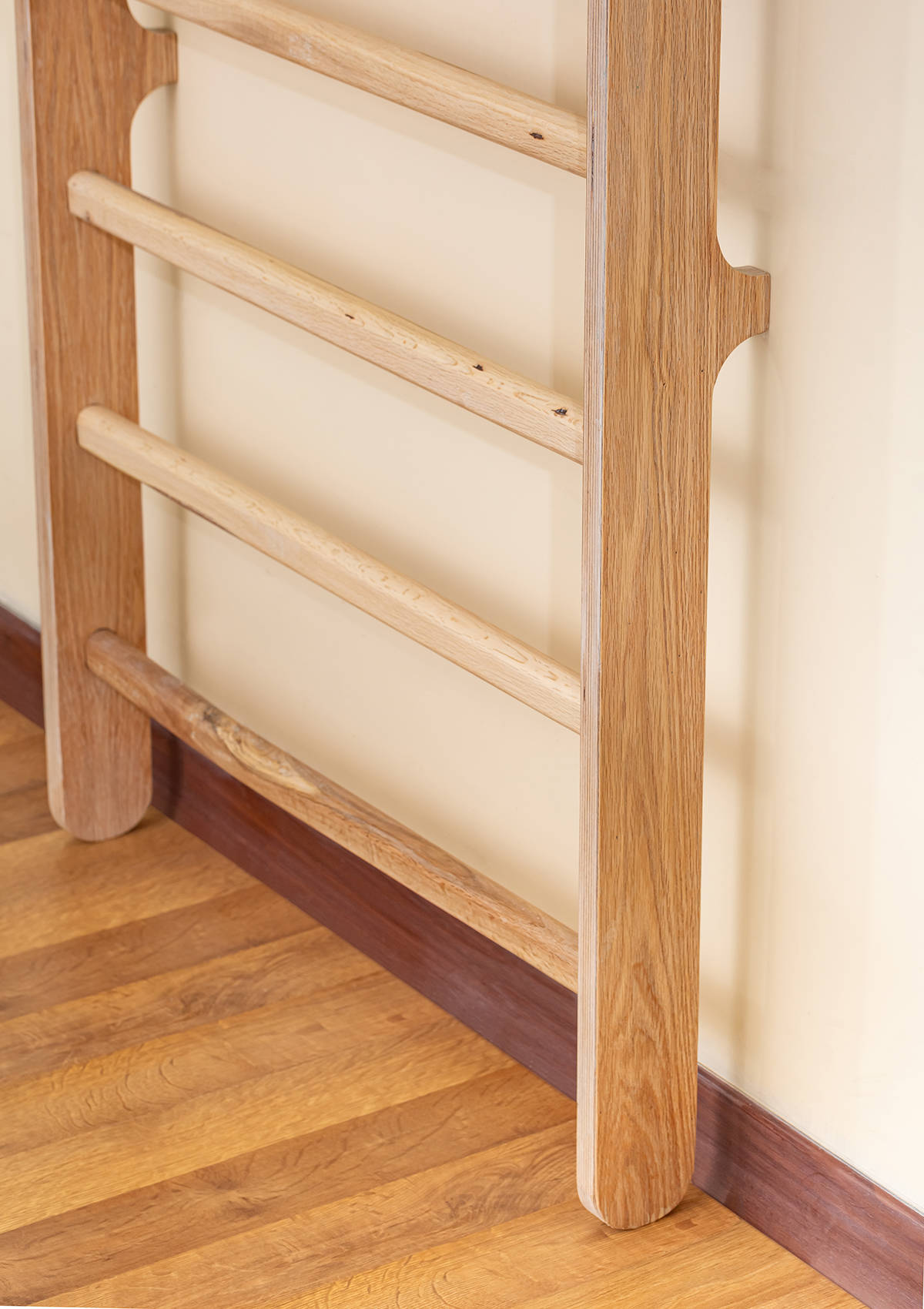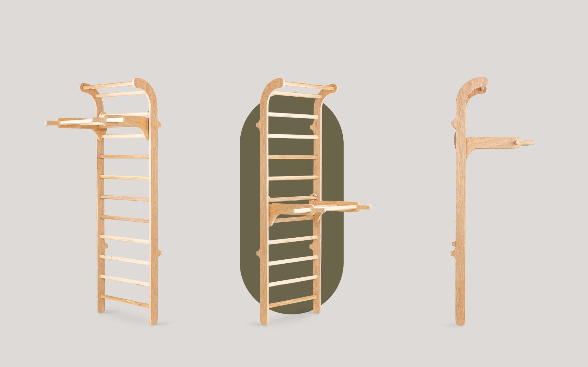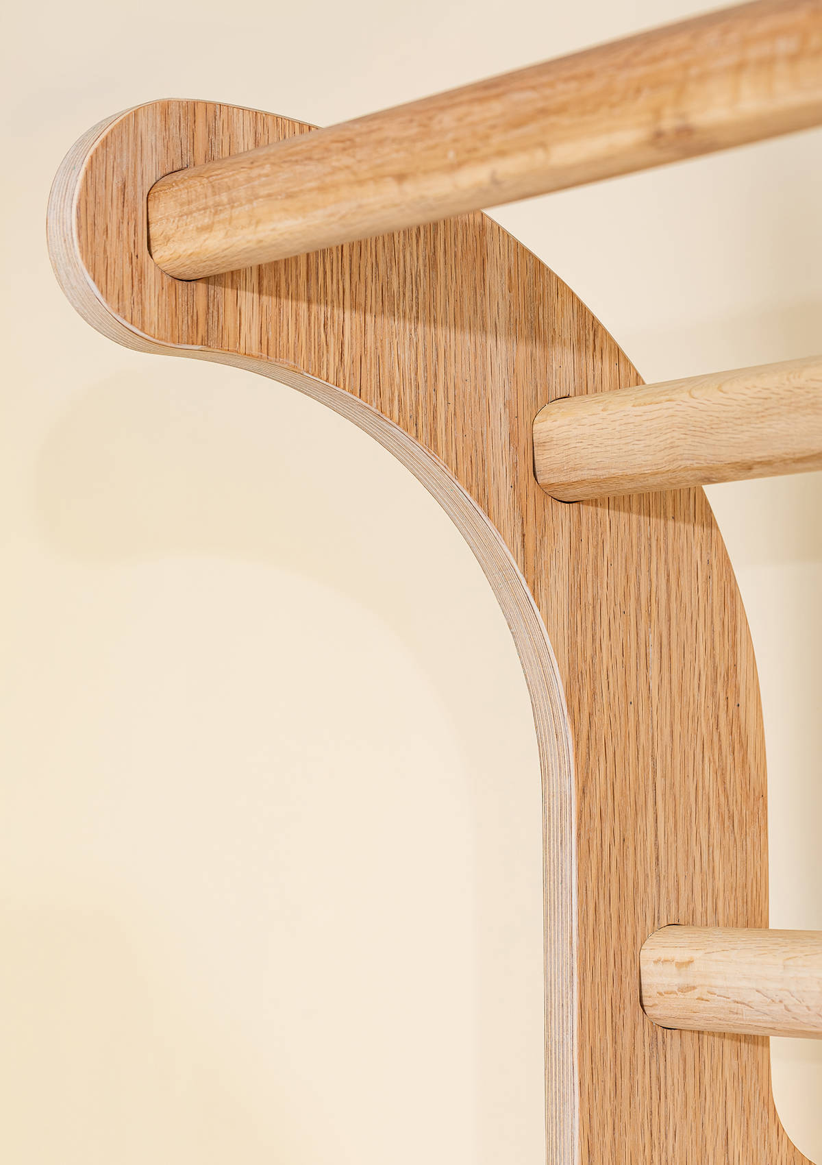 The Kanso Wall Bar brings the timeless Swedish ladder into a modern context. Its clean design and solid wood construction create a piece that feels at home in both a training space and a living space.